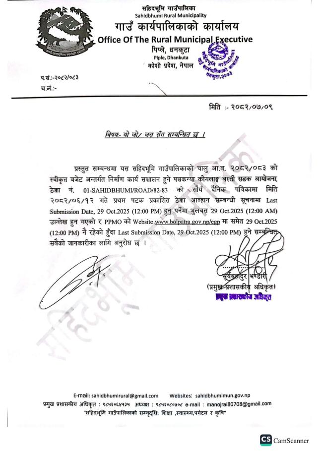 बोलपत्रको Last Submission Date सम्बन्धी सूचना |