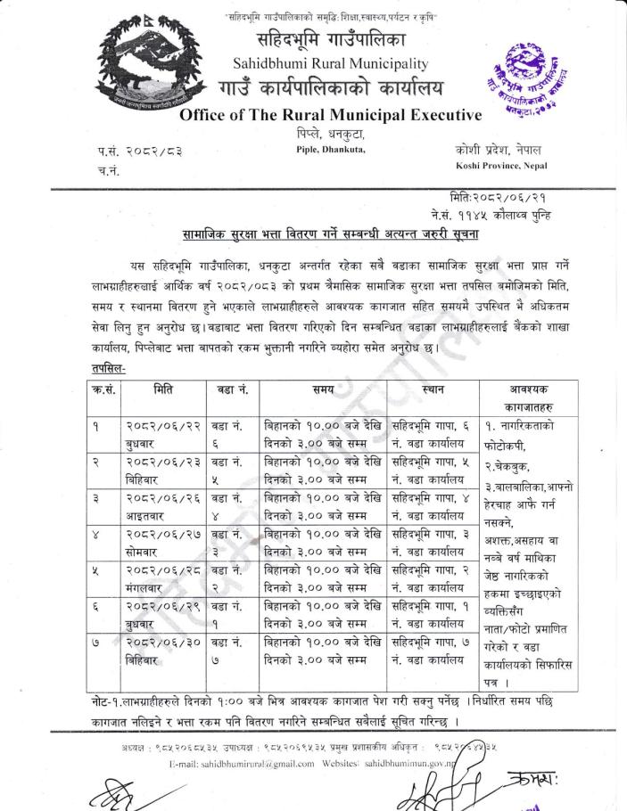सामाजिक सुरक्षा भत्ता वितरण गर्ने सम्बन्धी अत्यन्त जरुरी सूचना |